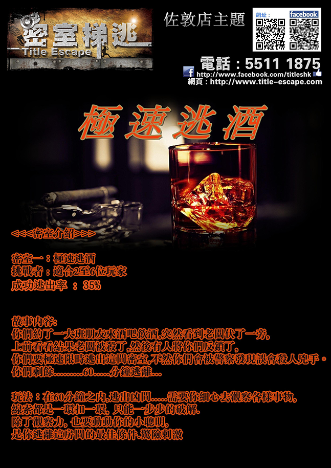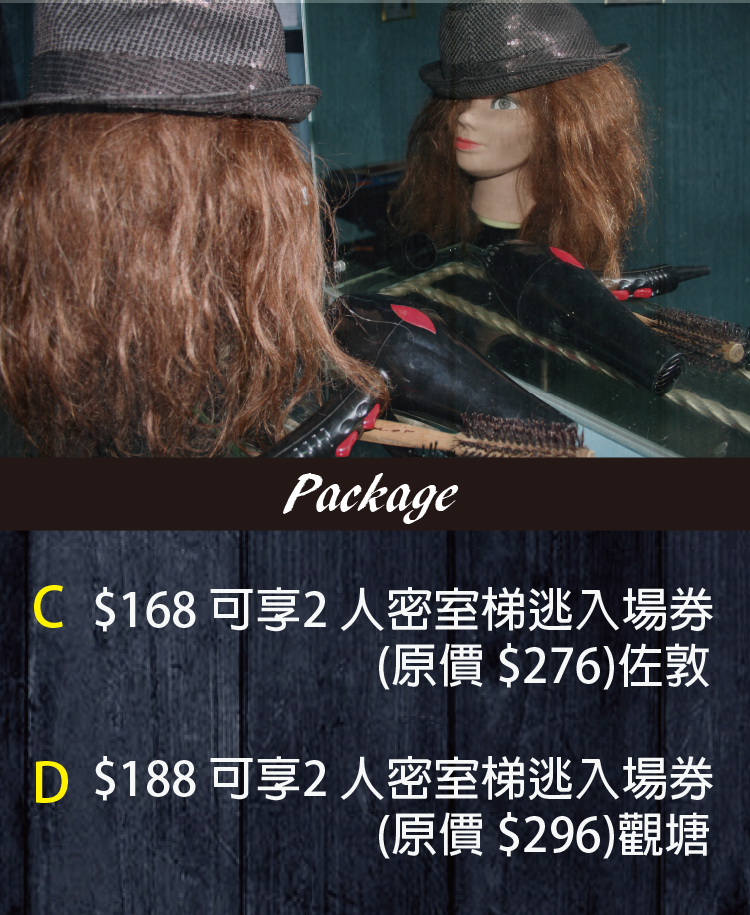 $168 可享:(價值 $276)2 人密室梯逃入場券 (佐敦)