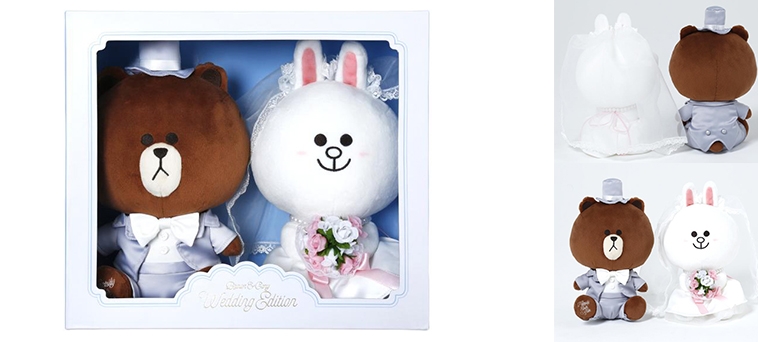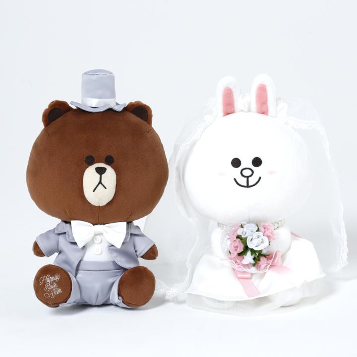 $980購【日本LINE FRIENDS 結婚公仔】日本直送,可愛之選;可愛熊大同兔兔既結婚公仔;婚車佈置夠可愛